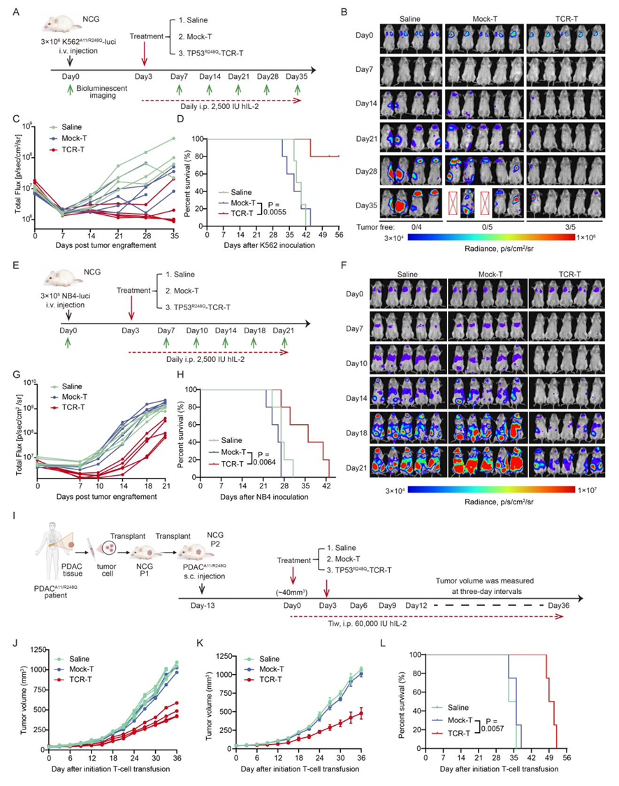 体外实验:能精准杀伤表达TP53R248Q/HLA-A*11:01的肿瘤细胞系(如NB4, CL40),并有效清除原代白血病患者细胞。